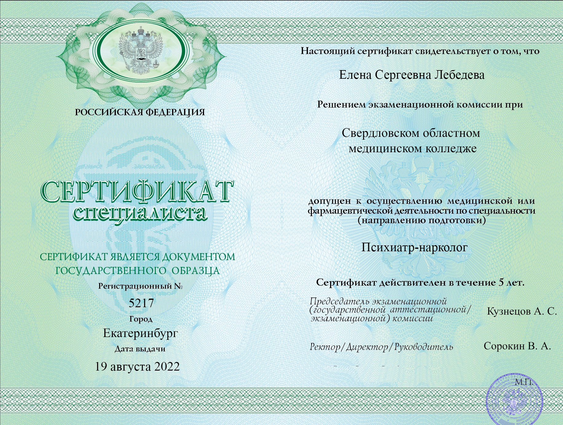 Елена Сергеевна Лебедева врач нарколог клиники доктора Стукаловой в Запорожье